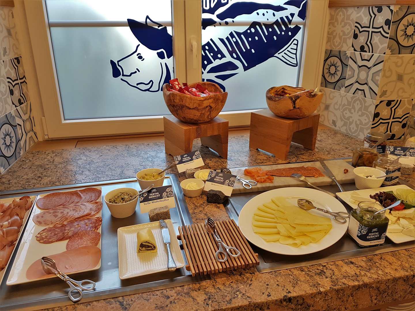 Frühstücksbuffet, Käse, Fisch und Wurst