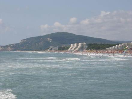 Blick von Norden des Strandes auf das Hotel Borjana.