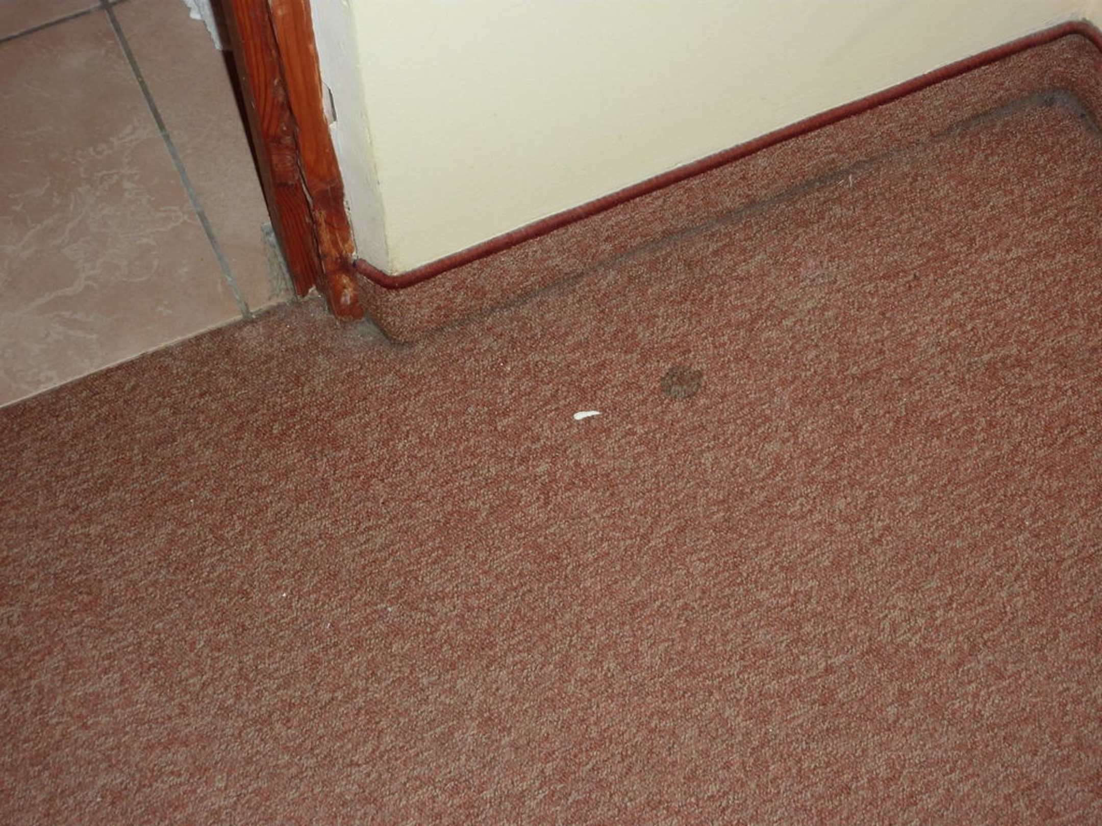 desolate Türzage und Teppichboden stark verschmutzt