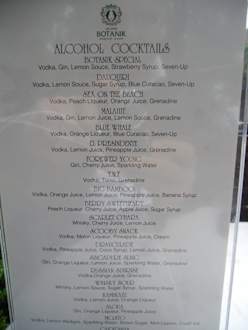 Coktailkarte Poolbar Hotel Botanik Platinum