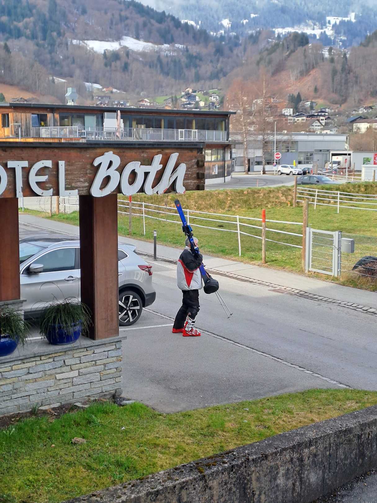 mein Mann auf dem Weg zum Skifahren