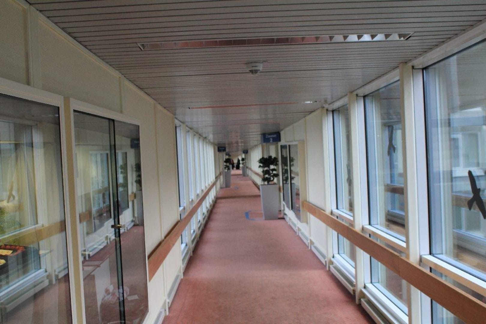 Blick in einen der langen Hotelflurs