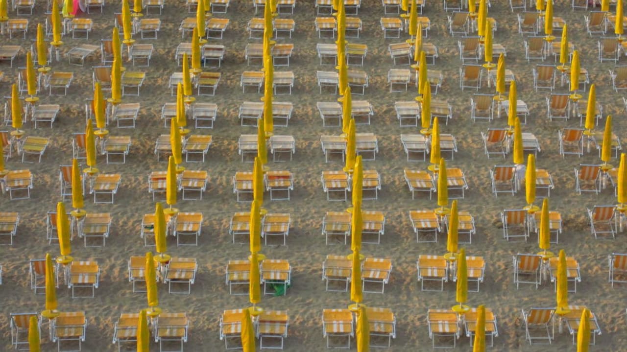 Sonnenschirme mit Liegen geschlossen