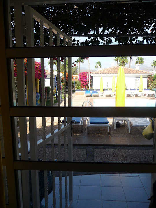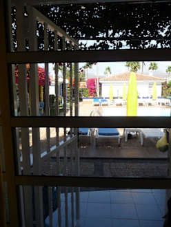 Ausblick vom Zimmer auf den Pool