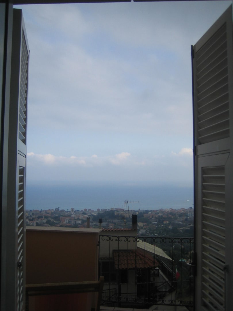 Blick aus unserem Schlafzimmer mit Terrasse. Von der Terrasse hat man einen wunderschönen Fernblick aufs Meer und den Boots-Hafen von Loano. Abends kann man sehen, wie sich der Mond im Wasser spiegelt. Herrlich!