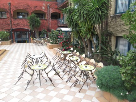Sitzplätze der Hotelbar im Garten