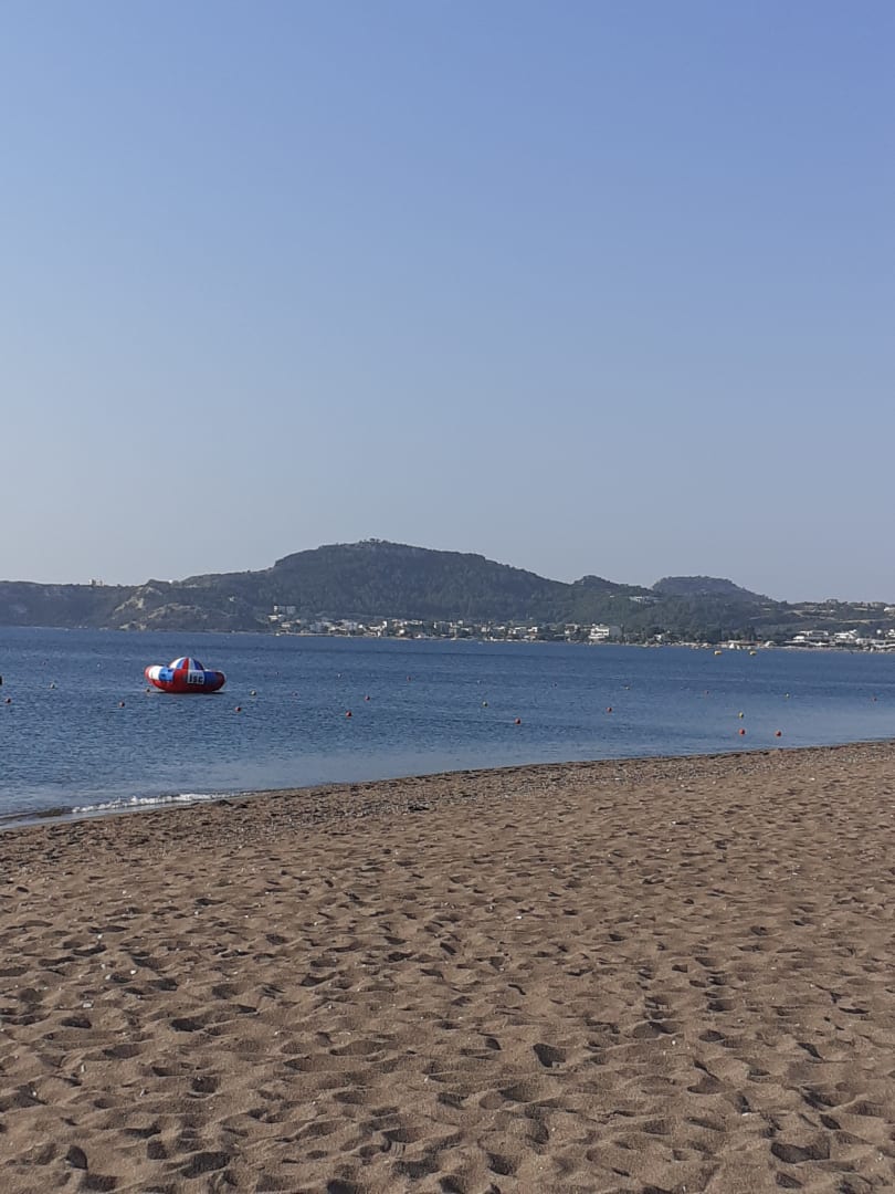 StrandSehr schöner dunkler Sandstrand,Liegen nur tw. Neu,aber gratis,beim Reingehen ein paar Steine,aber problemlos ohne Badeschuhe