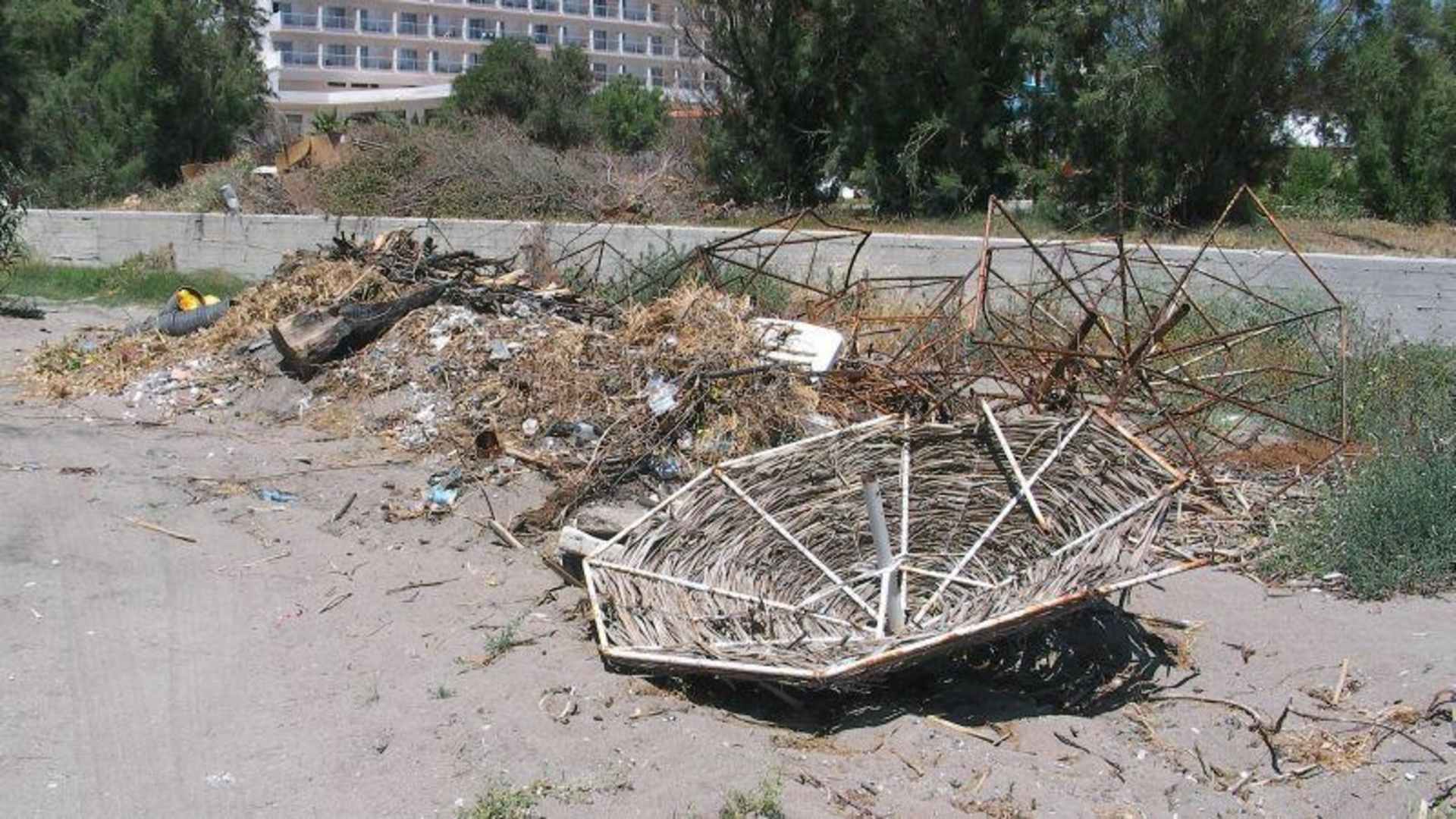 Müllplatz am Strand und neben der Rasenliegefläche