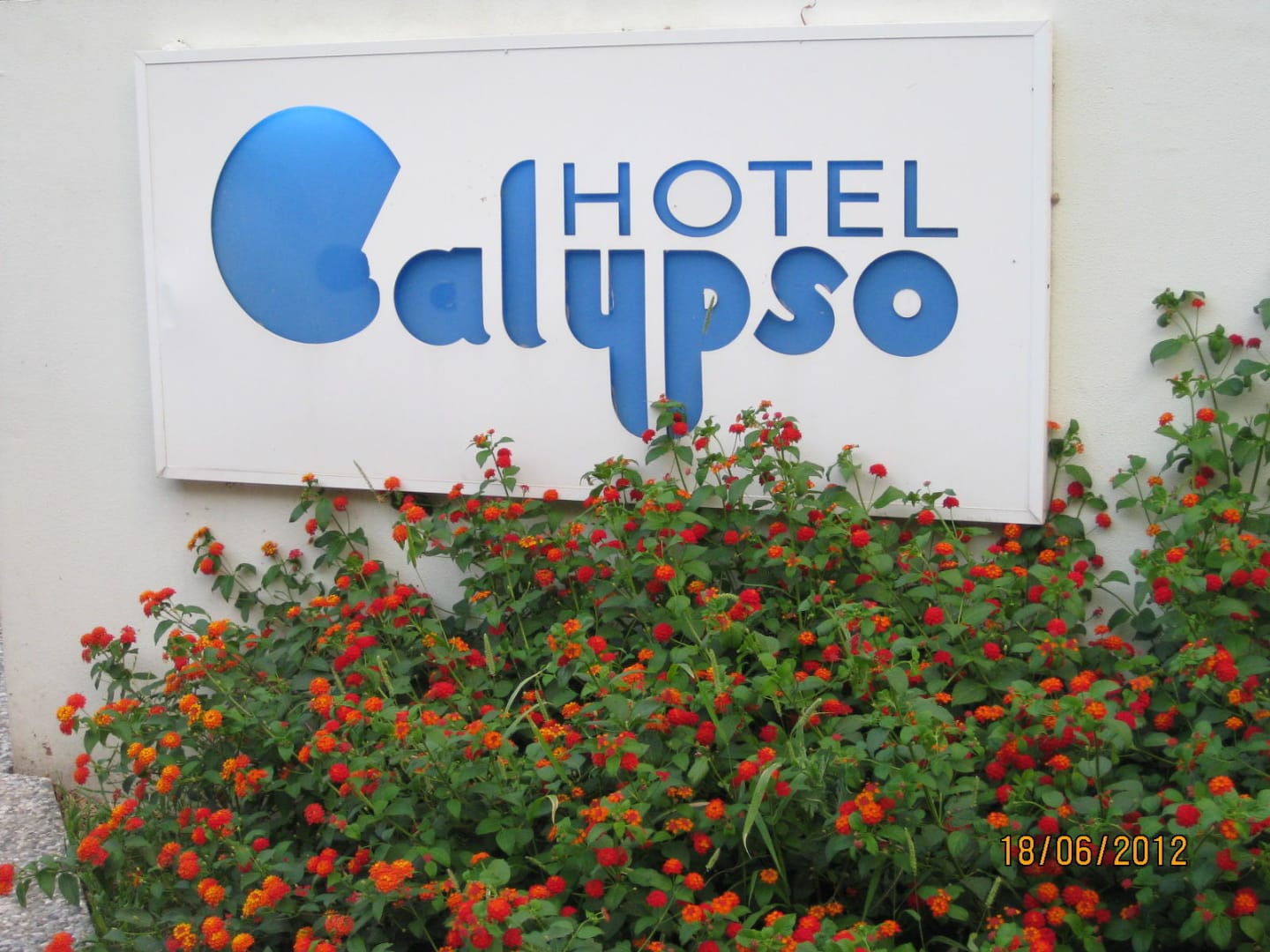 Hotel CalypsoHotelschild im Garten