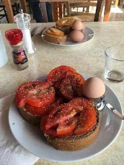 Beste Tomaten, beste Kräuter, kretisches Brot zum Frühstück