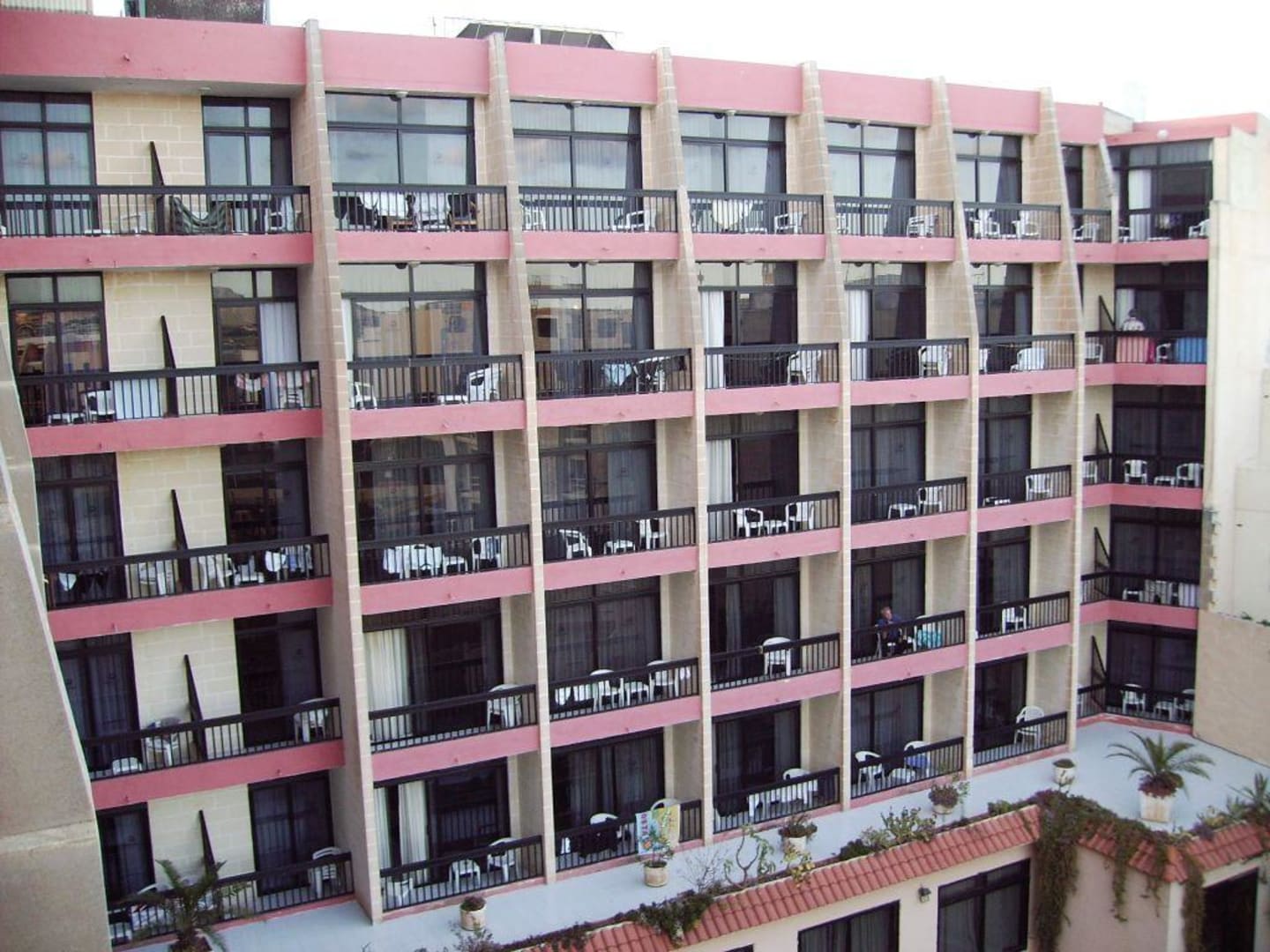 Fensterfront des Hotels Canifor zur Poolseite hin