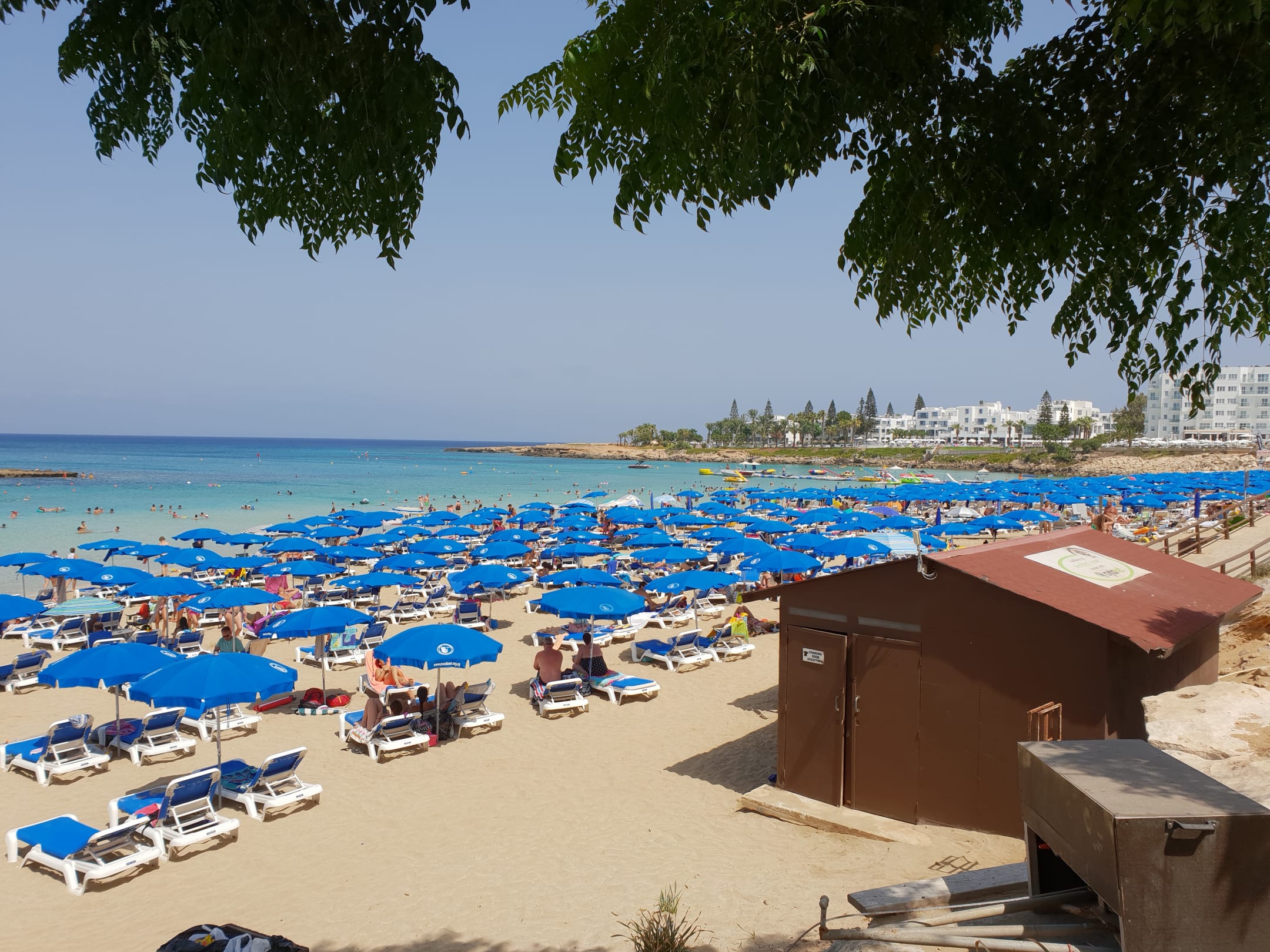 öffentlicher Strand mit noch wenig Menschen, da noch vormittags