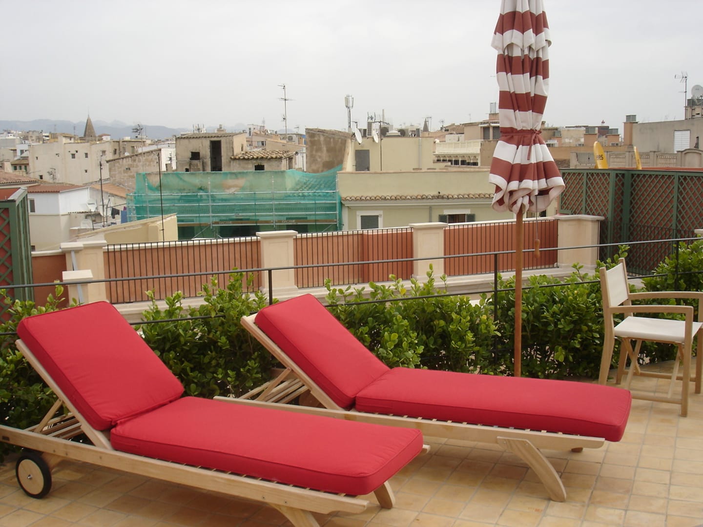 Sonnenliegen auf der Dachterrasse beim Pool