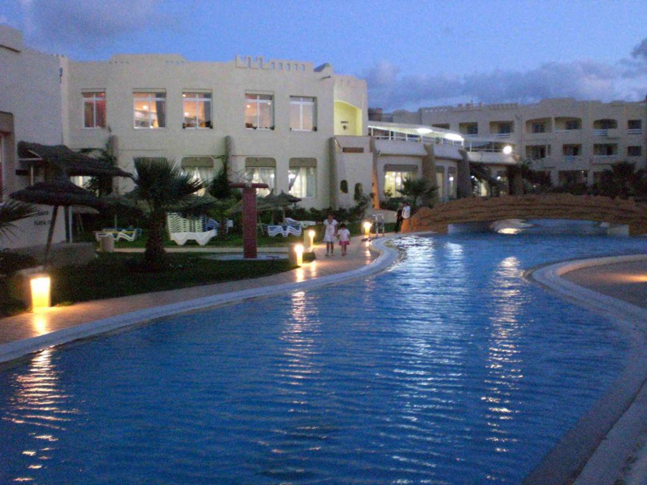 Die Poolanlage (1 langgezogener Pool) erstreckt sich in Nord-Süd-Richtung. Acht dreistöckige Häuser ( je ca. 75 Zimmer) in spanisch-arabischer Architektur mit Atrium umranden diese Poolanlage.