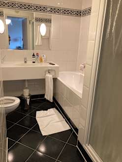Das Bad mit Dusche (rechts) und Wanne.