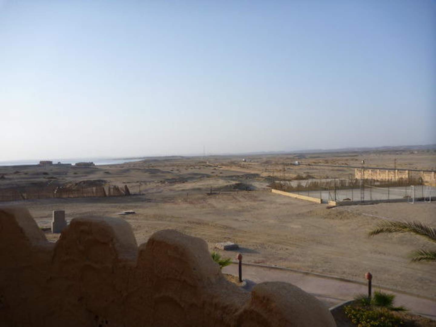 Blick aus der Eingangstür Richtung Wüste und Meer Richtung Osten