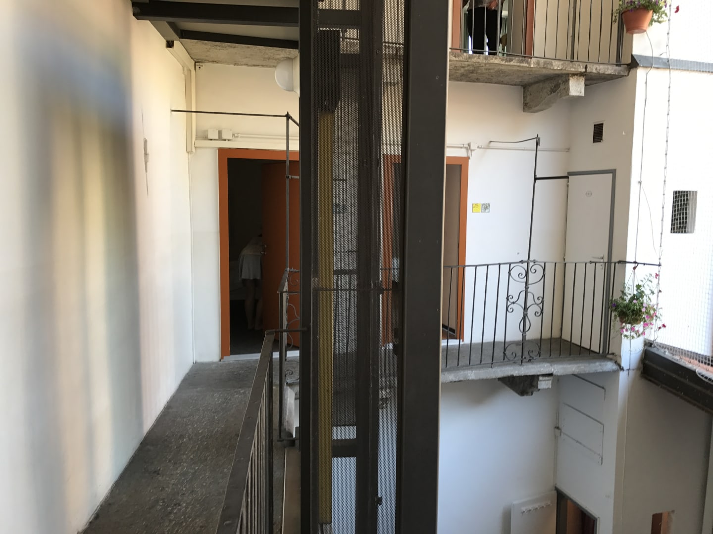 Innenhof, lift in der Mitte, WC und Zimmer