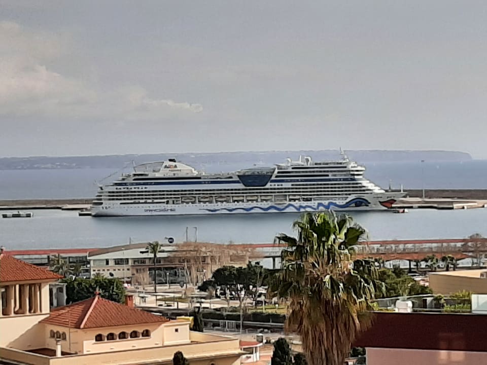 Blick vom Balkon auf den Hafen.