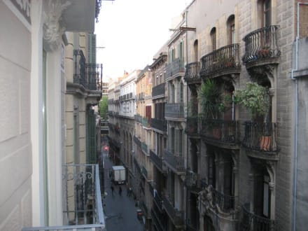 Blick aus dem Zimmer 407 vom Balkon her raus auf die Strasse.
