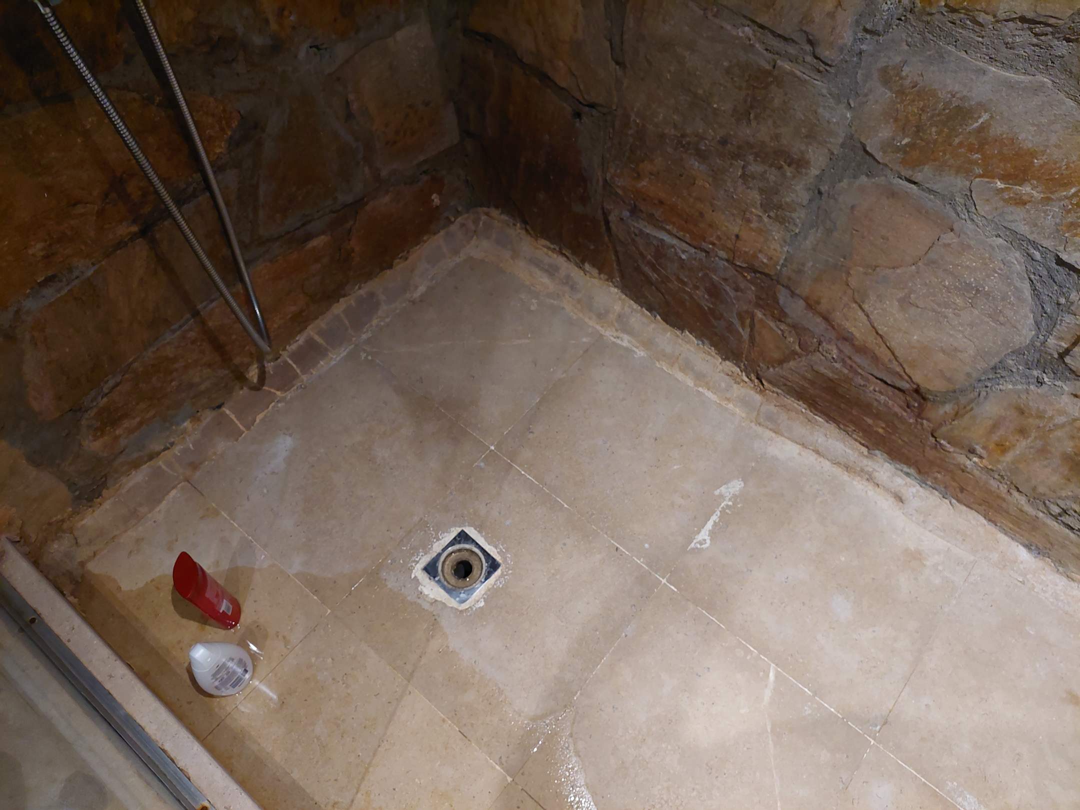 Dusche, fehlt die Abdeckung für den Abfluss.