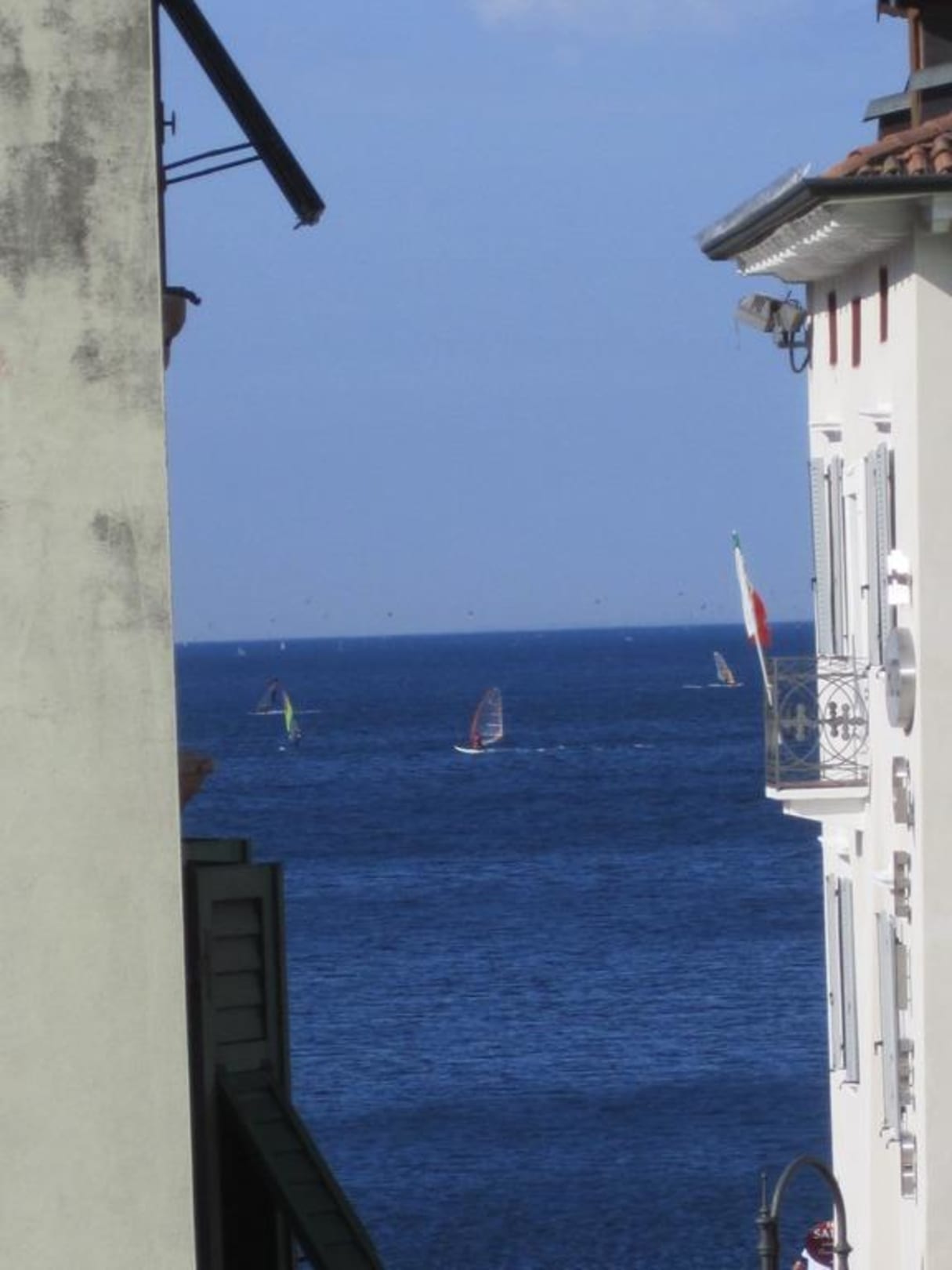 Morgens am GardaseeDieser herrliche Ausblick ist zwar nur aus einem einzigen Fenster des Hotel Centrale möglich, er zeigt jedoch die Nähe zum See.