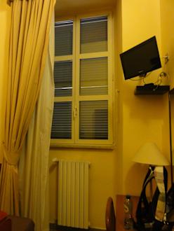 Fernseher, Schreibtisch und Heizung