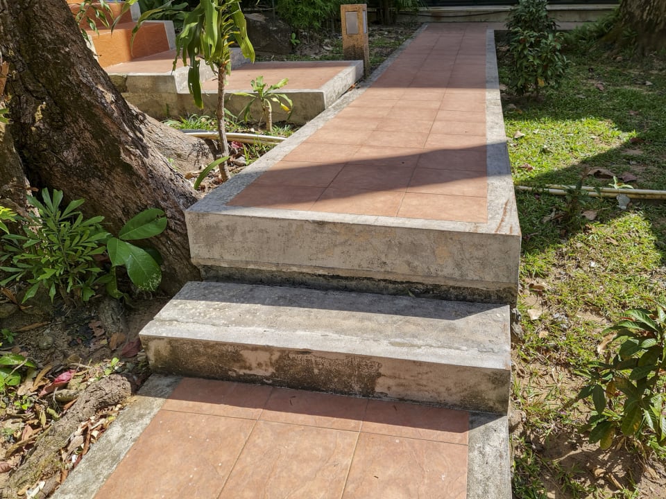 Unterschiedliche hohe Treppenstufen trainieren das Gleichgewicht.