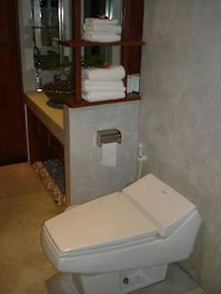 Badezimmer im BungalowSo sieht die Toilette im Superior Garden View Bungalow aus.