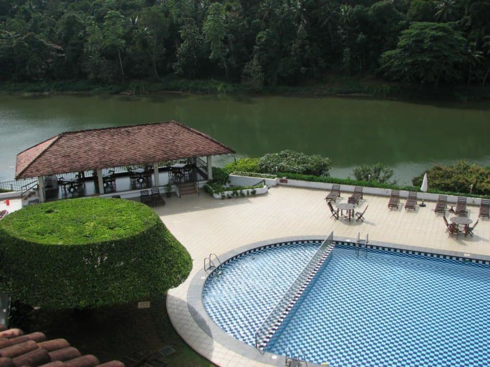 Blick auf den Pool und den Fluss Mahaweli