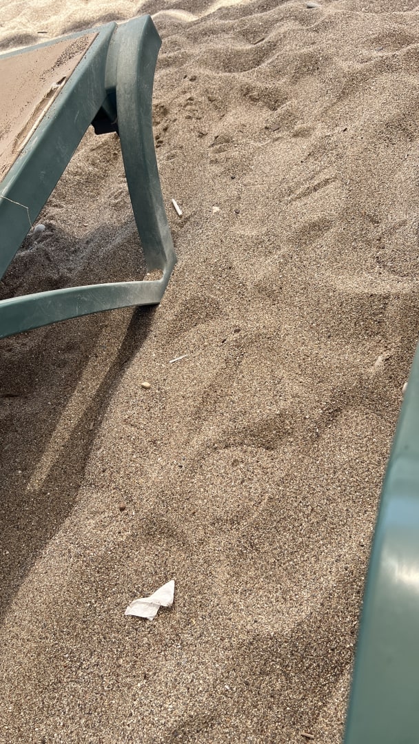 Der Strand ist auf jeden Fall nicht sauber. Grobkörnig wie man es sieht