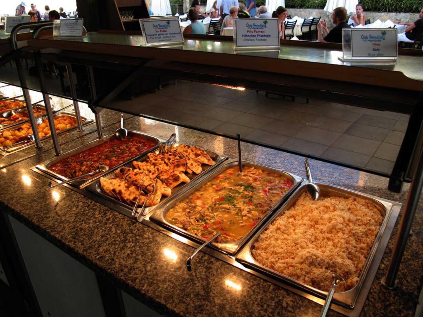 . . . rechts stehen die Teller - dann werden 12 verschiedene Hauptspeisen angeboten (1. Bild)