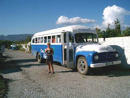 dieser alte Bus aus den 50er fährt alle halbe Stunde vom/zum Strand