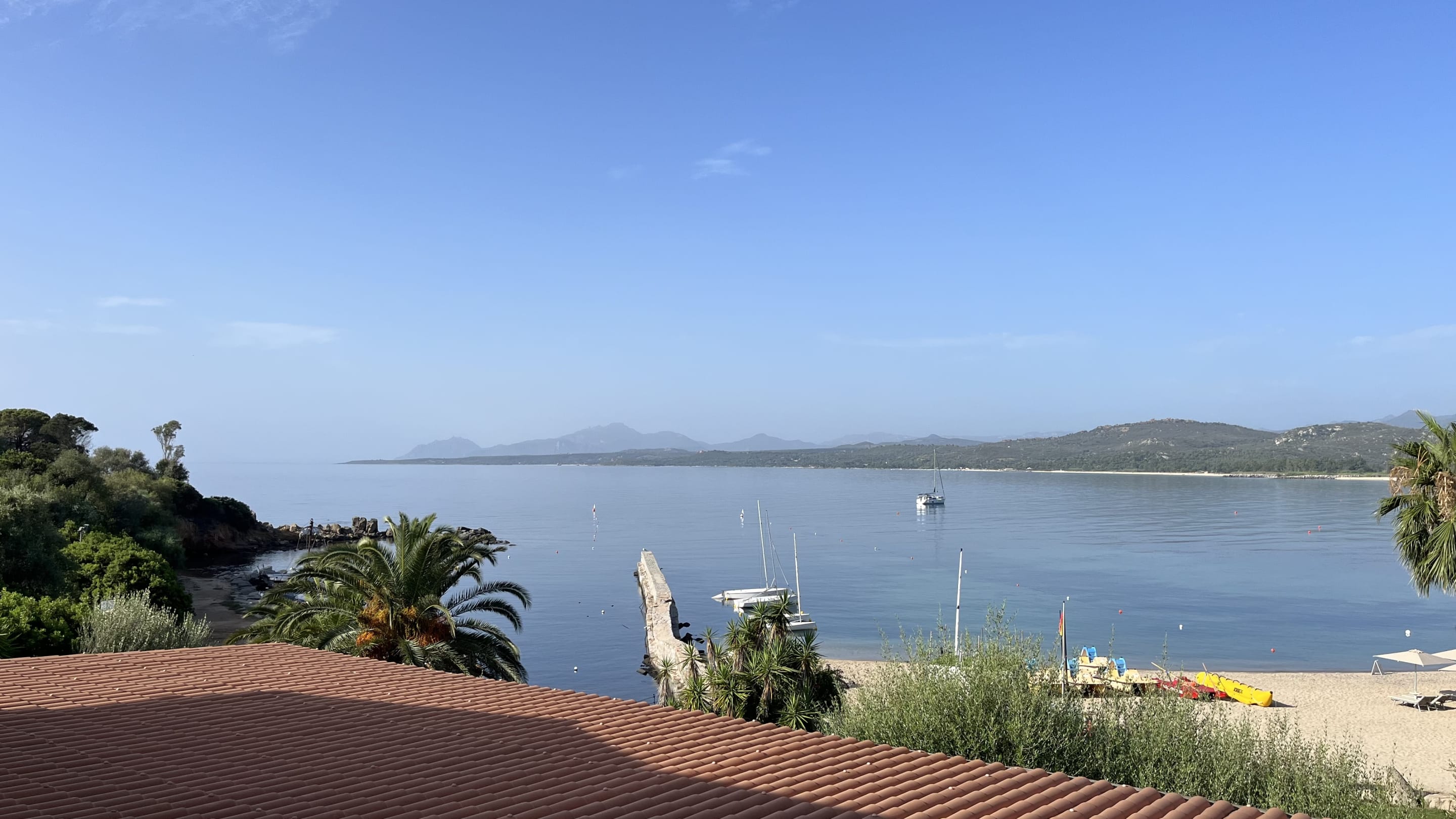 Blick vom Frühstücksbereich zum Strand