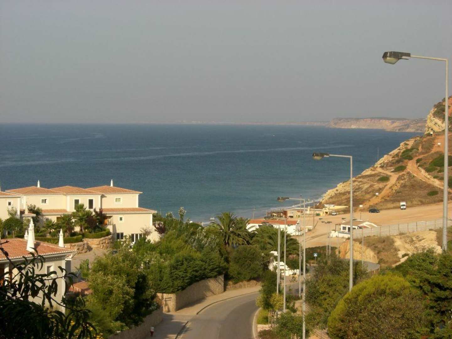 Das Bild zeigt links das Hotel Porto Mos, mittig den Strand Porto Mos