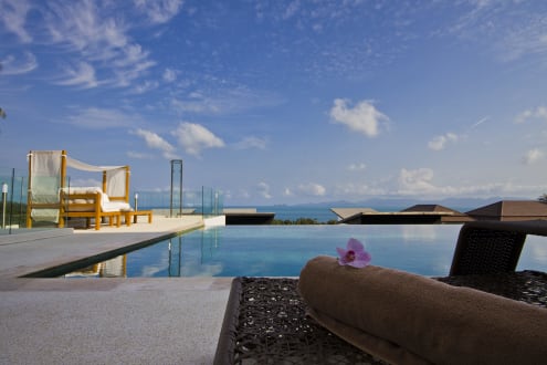 Poolanlage mit Blick zum Meer