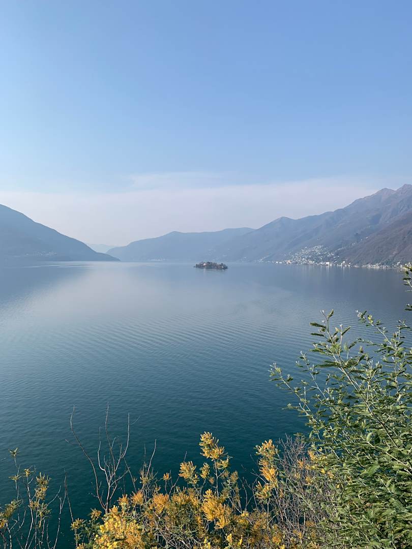 Panoramaaussicht auf die beiden Brissago-Inseln Richtung Italien (Luino/Cannobio)