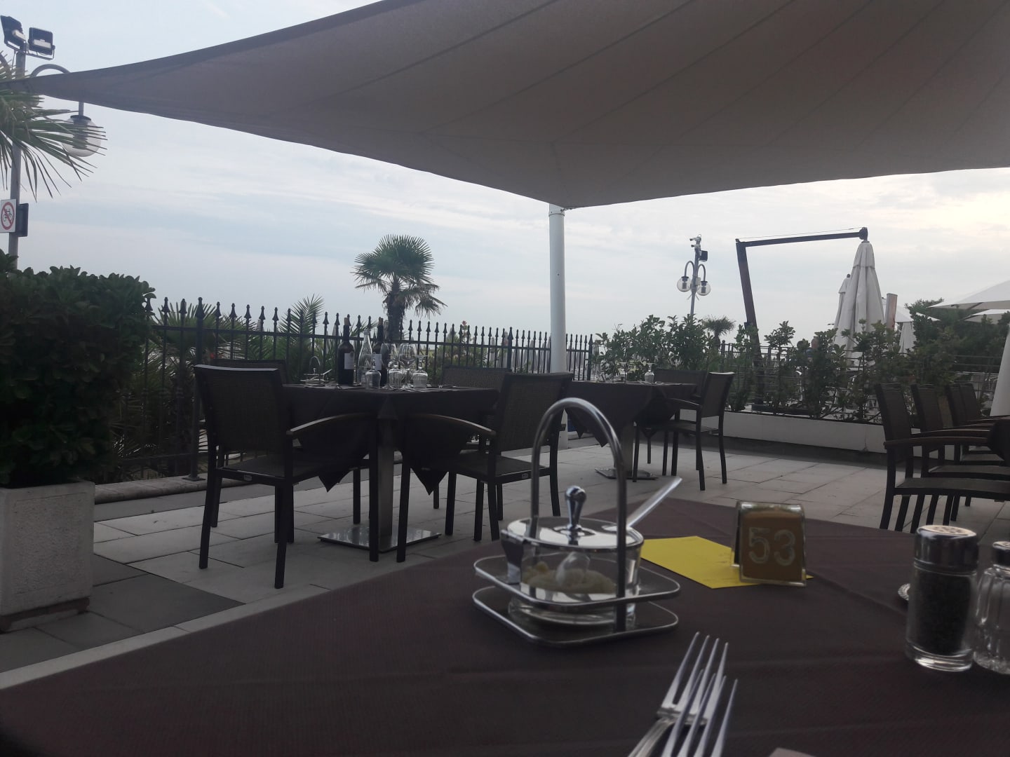 Terasse auf der man Frühstück und Abendessen zu sich nehmen kann.