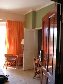 Blick von Zimmertüre Richtung Bad/Balkon