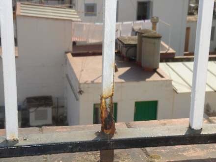 Das Geländer auf dem Balkon im 5ten stock!! unglubliches Sicherheitsrisiko. das könnte einfach abbrechen.. so sa jede zweite stange aus...außerdem war das geländer kaum nen meter hoch...