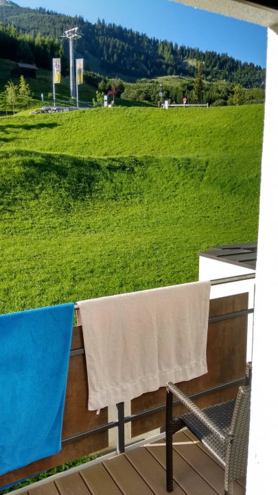 Balkon + Ausblick auf die Gondel Richtung Ladis