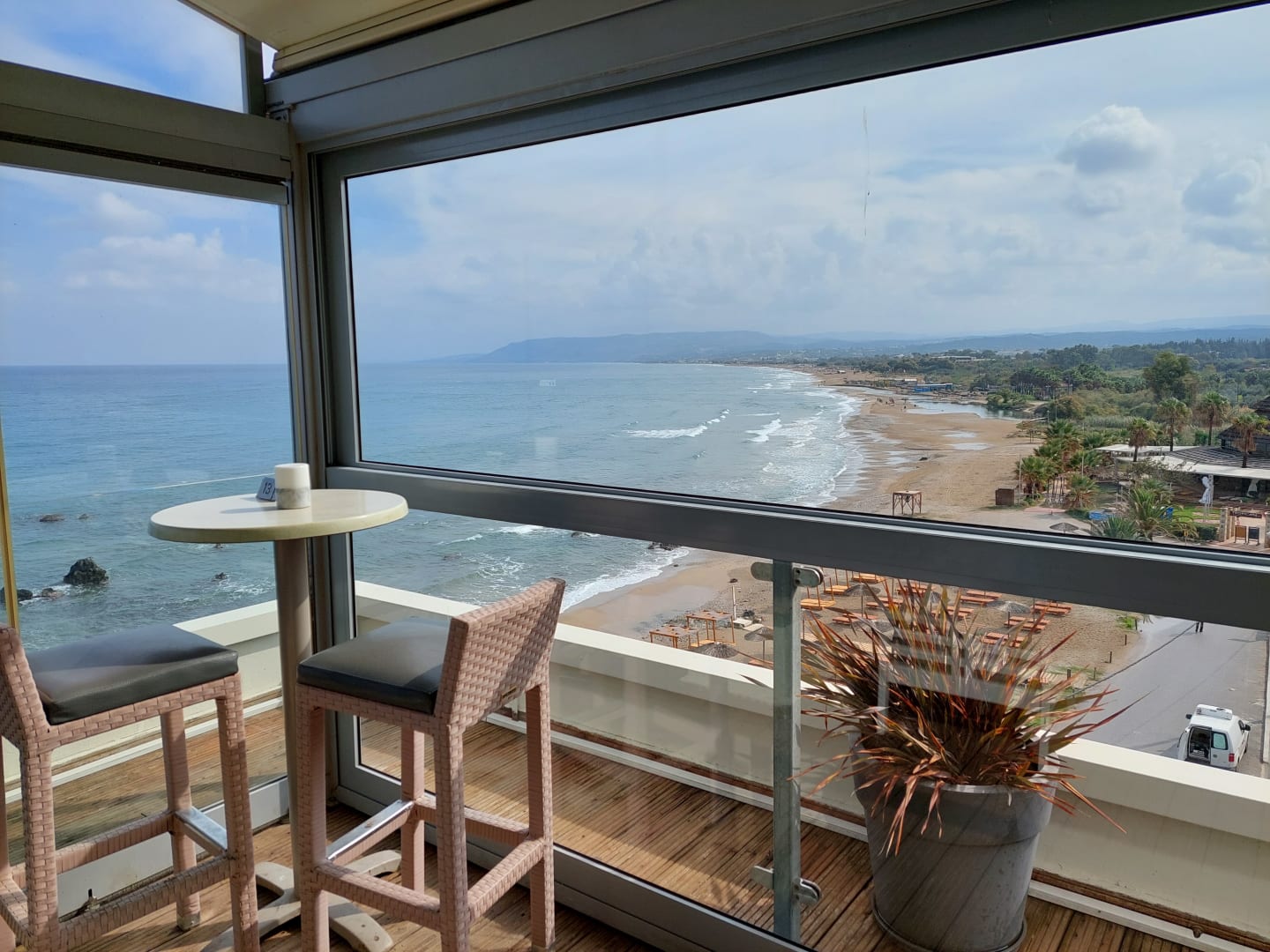 Ausblick zum Strand von der Bar im 4.Stock.