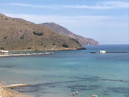 Blick vom Balkon Richtung Hafen/ Kapelle/ Fisch Restaurant Arkadi