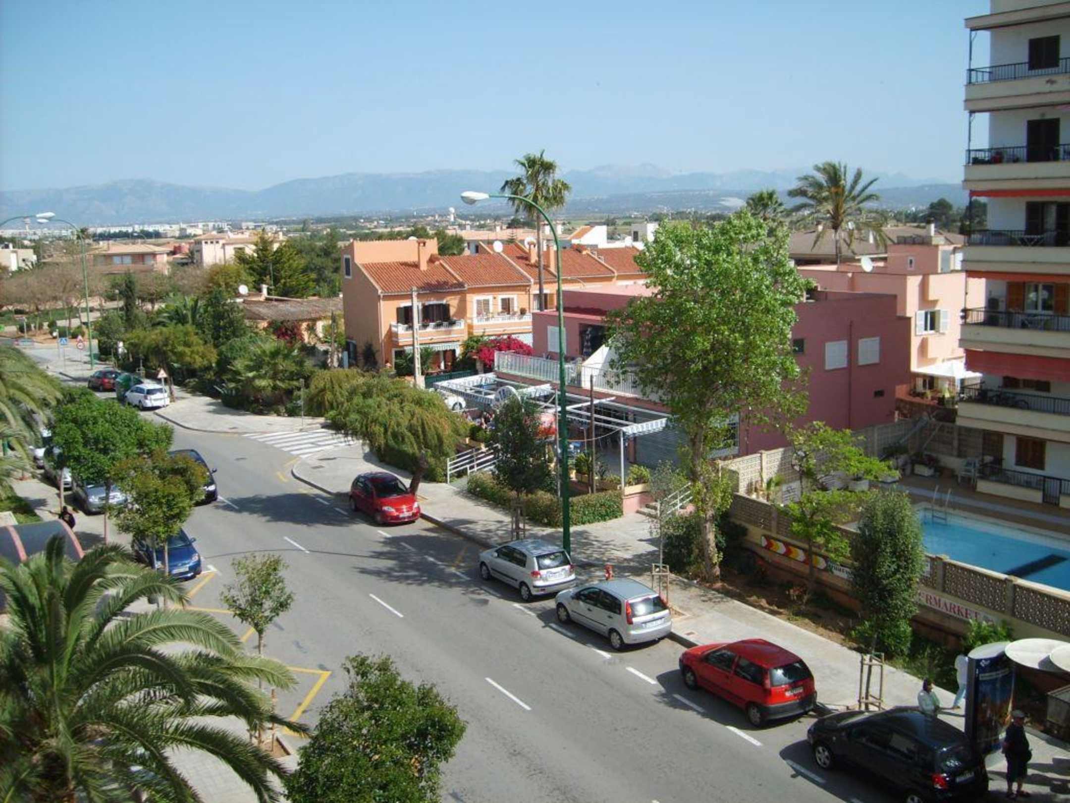 Ausblick vom Balkon in Richtung Straßenseite
