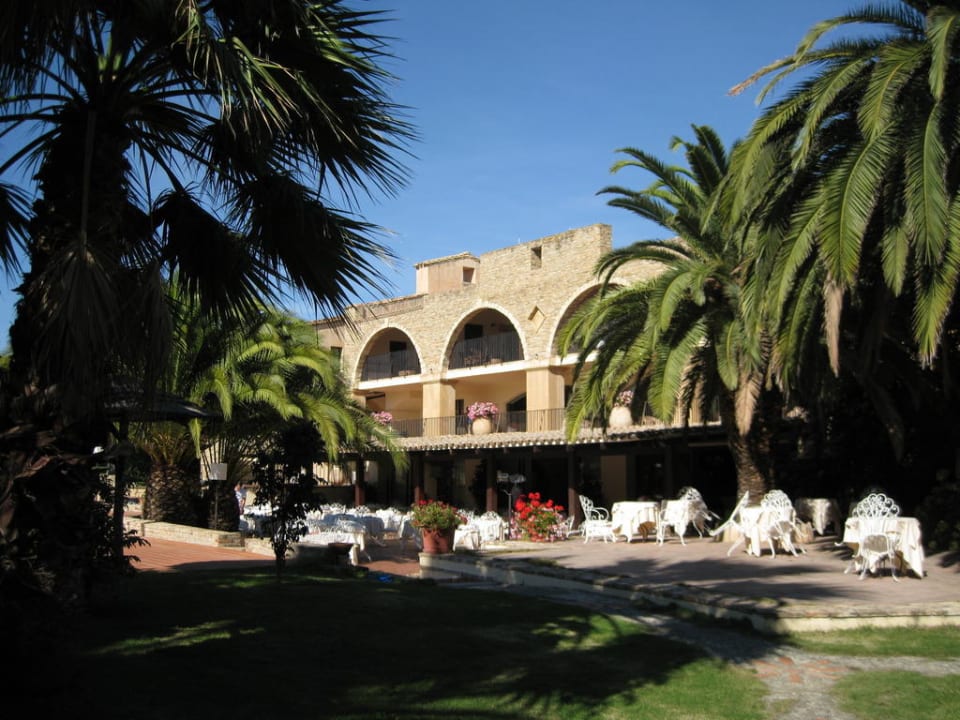Blick vom Garten auf das Restaurant