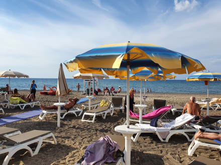Mit Shuttle Bus zum Strand,steinig,Sand nur bei den Liegen