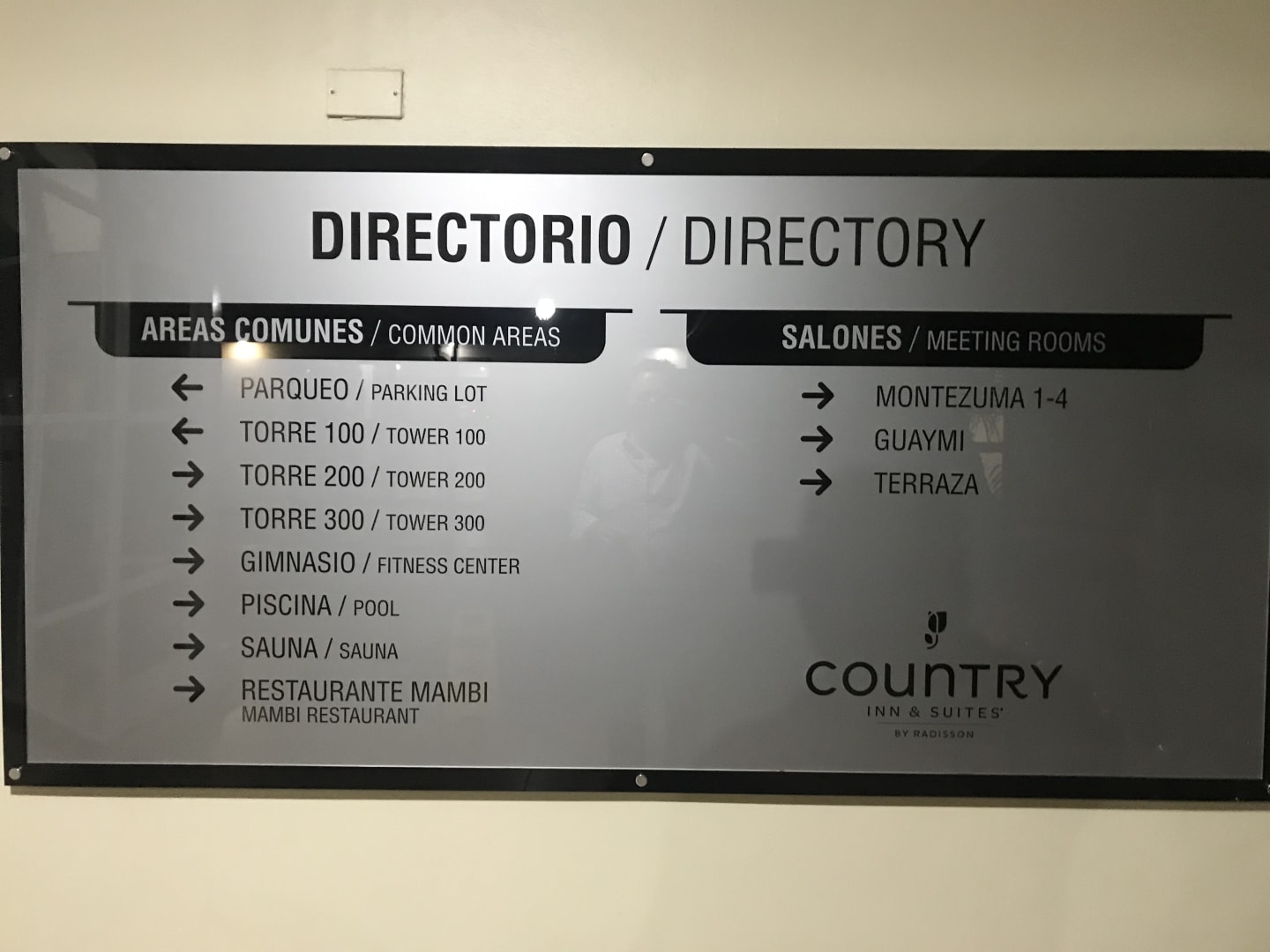 Direktions-Tafel in der Lobby
