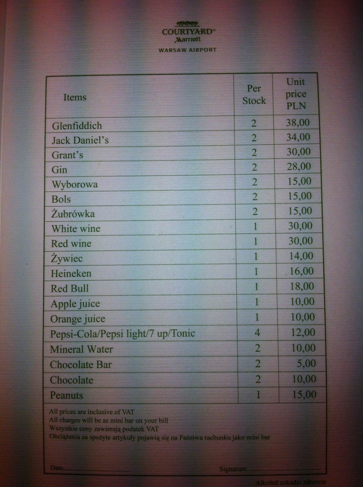 Minibar Preise