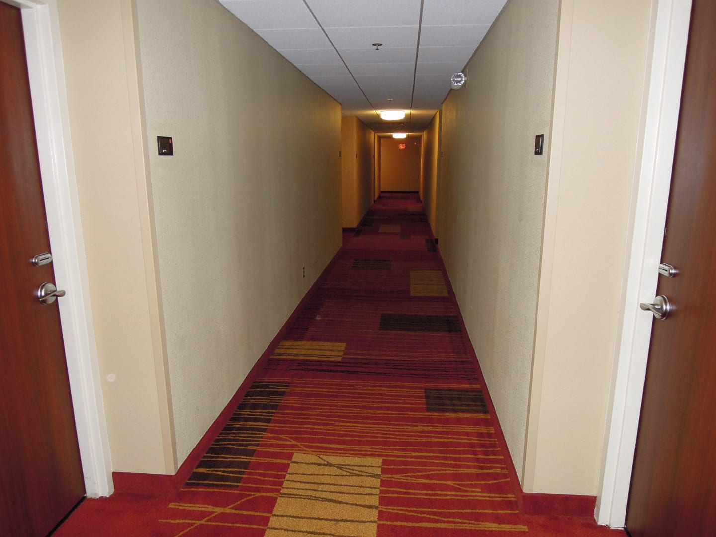 Korytarz hotelowy.
