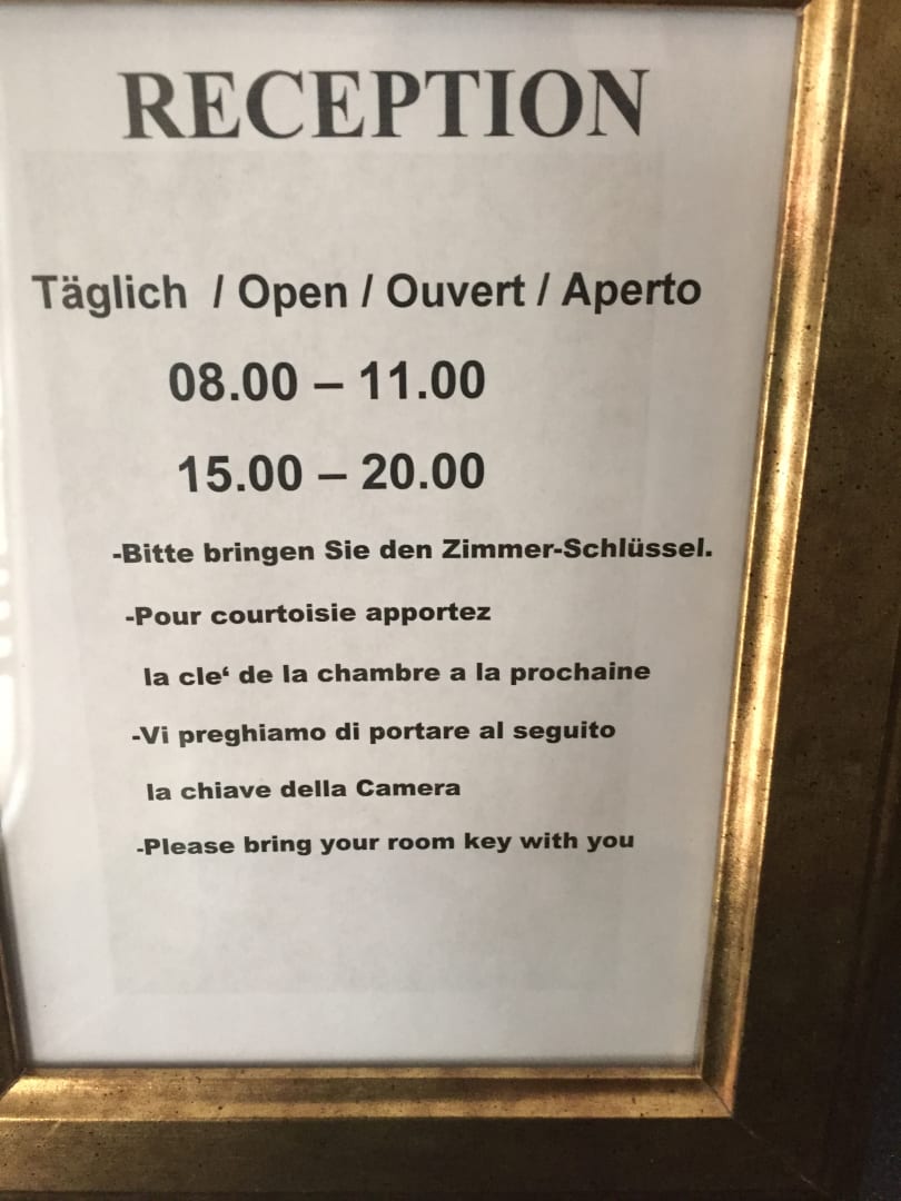 Dieses Schild war an der Rezeption gut ersichtlich plaziert, aber an den ersten 2 Tagen nach unserer Ankunft, war die Rezeption gden ganzen Tag Geschlossen...!