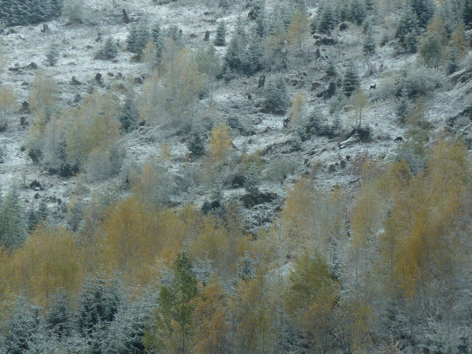 De gemzen op de helling bij het hotel.